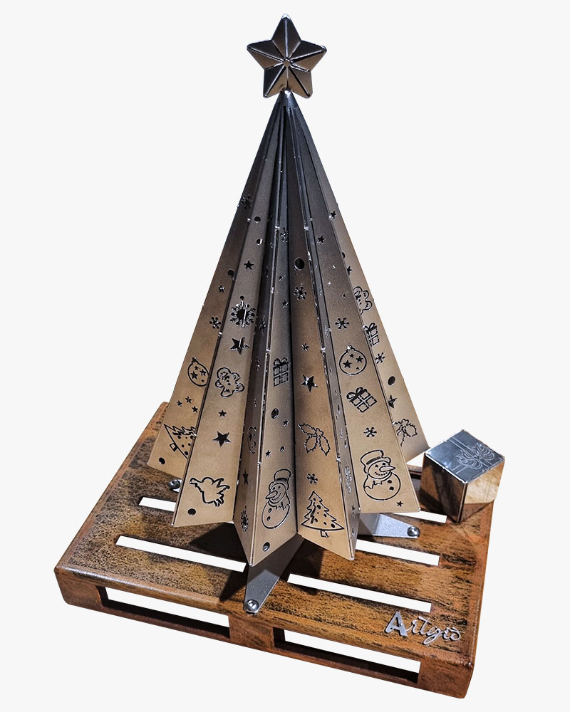 Alberello di Natale Design in acciaio Inox e Corten o verniciato color Corten. Centrotavola Natalizio.